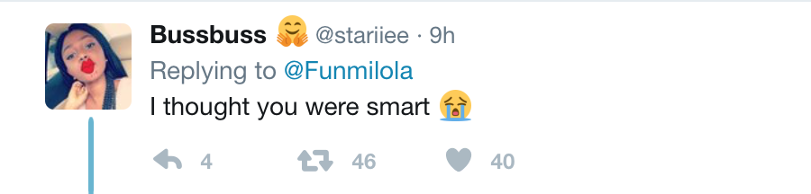 Nigerians who felt insulted by Funmi’s statement came for her. Tweets continue below: