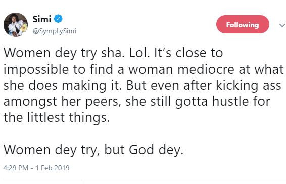 » 'Itâs close to impossible to find a woman mediocre at what she does' - Simi
